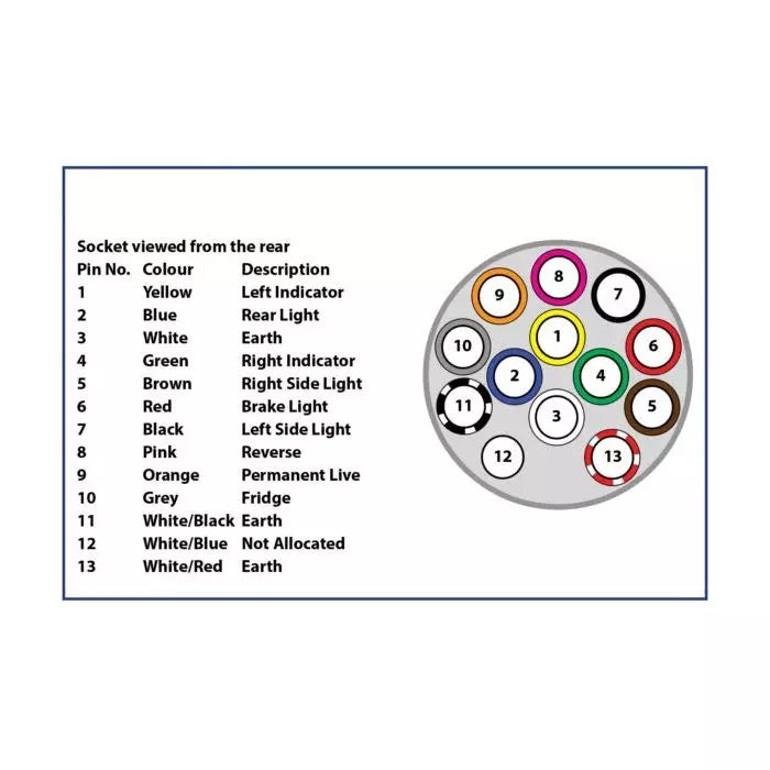 - 12V 13 Pin flying extension socket used on caravan and trailer applications